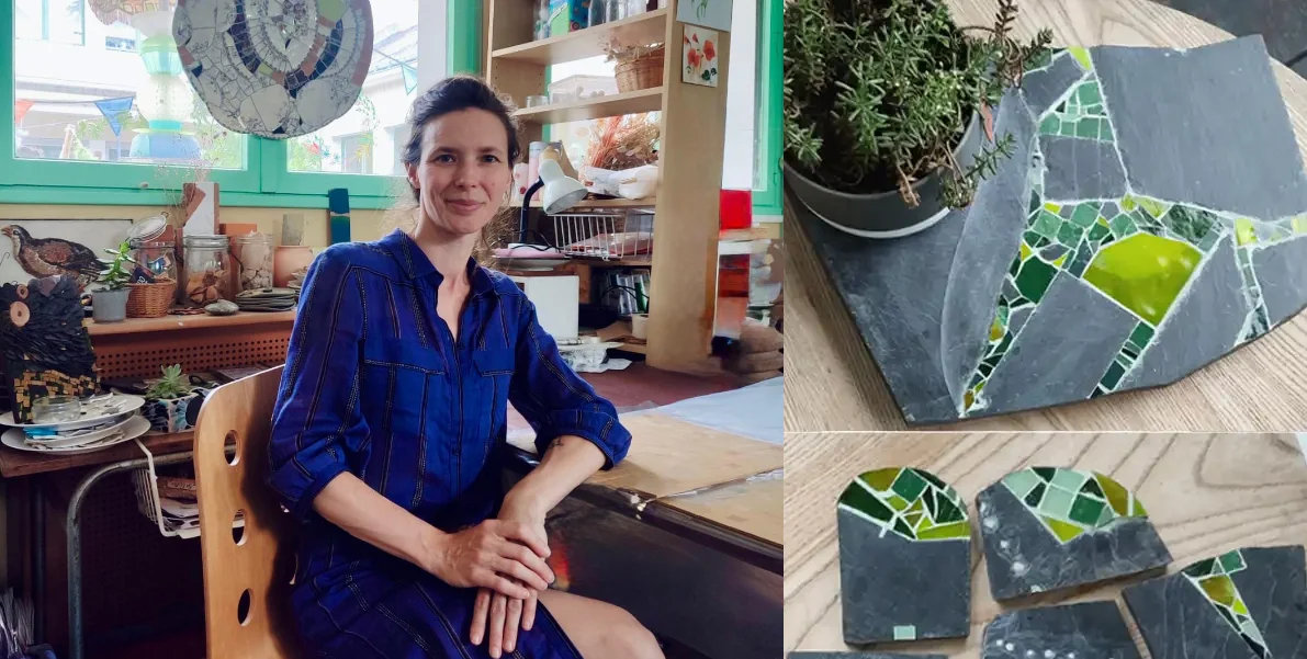 Je suis Julie, mosaïste à Angers, j’explore la mosaïque comme un art vivant, à la croisée de l’artisanat, de la poésie du quotidien et de la création partagée.